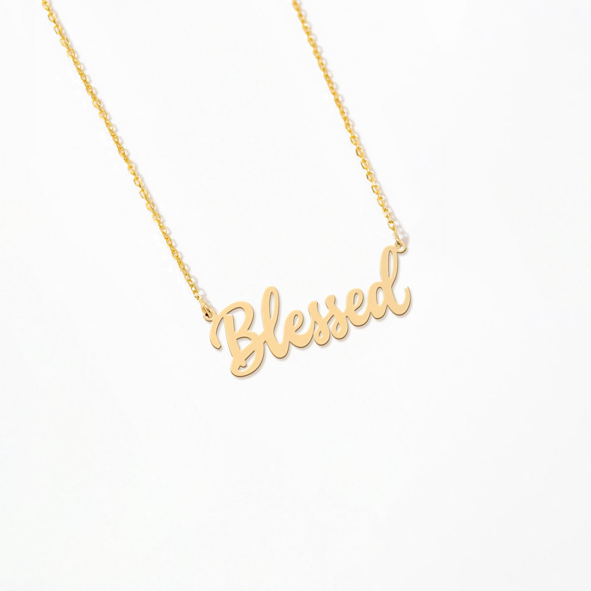 Blessed Script Necklace 14K Gold Plated Sterling Silver Necklace