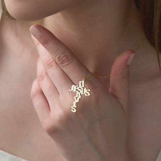 This gold plated silver necklace perfectly engraves the message 'Jesus Saves' in a cross-shaped pendant. A symbol of faith and love, this sterling silver jewelry piece embodies the belief in Jesus's saving grace.