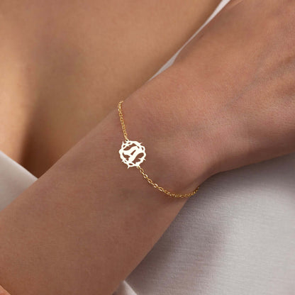 Holysteller's Custom Initial Thorns Bracelet is a luxurious piece, carefully crafted in 14K Gold Plated Sterling Silver. The intricate thorns design gives it a unique and stylish edge.