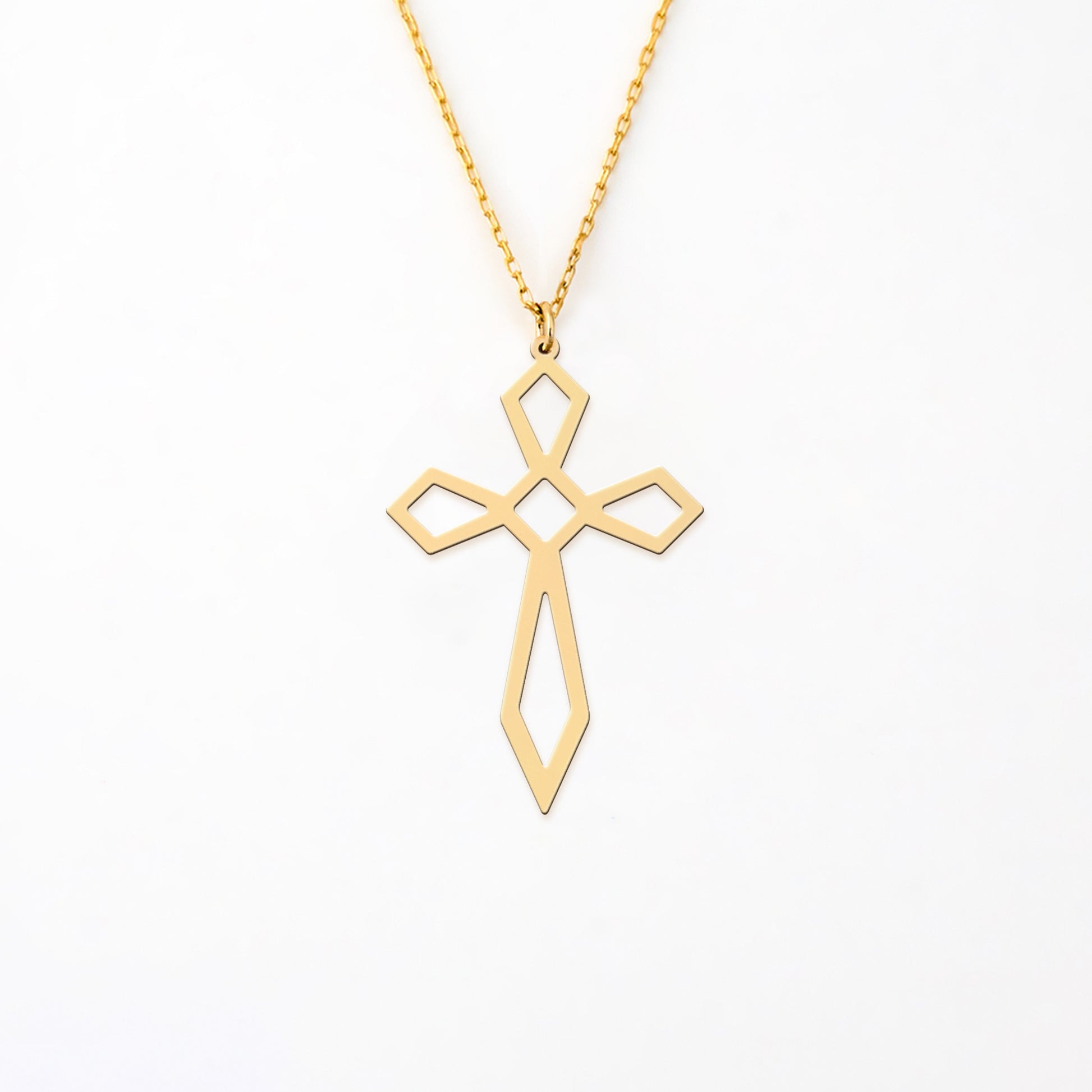 Experience the luxurious touch of Sterling Silver, elegantly finished with 14K Gold Plating in our Unique Geometric Hollow Cross Necklace. Handcrafted with love and precision by Holysteller, this piece represents a perfect blend of style and spirituality.