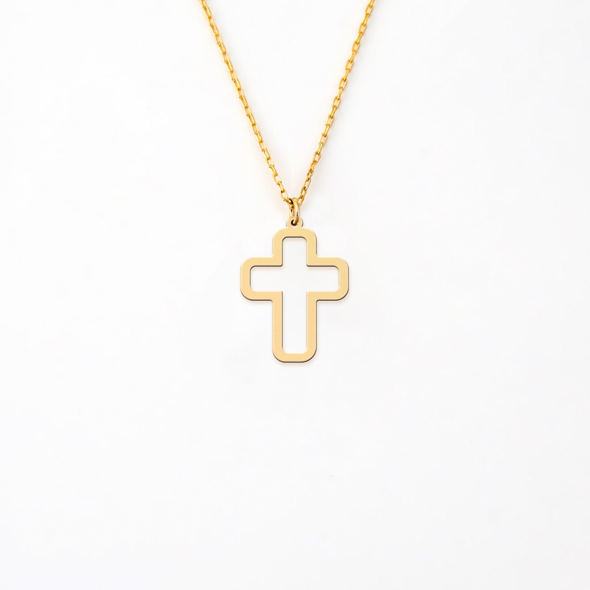 Minimalist Hollow Cross Necklace in 14K Gold Plated Sterling Silver