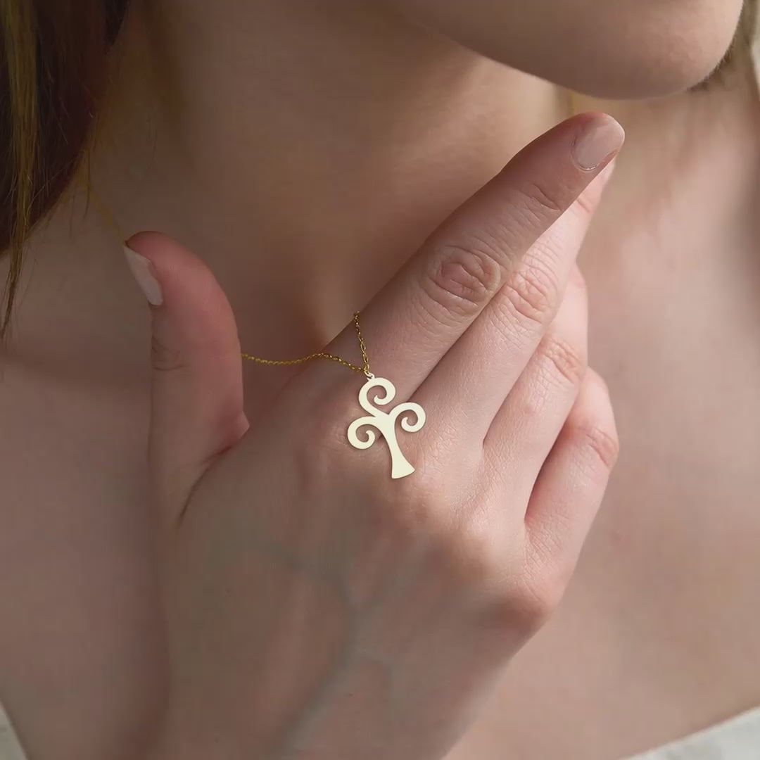 Crafted in Sterling Silver and available in Gold Plated Silver as well, this unique Modern Swirl Cross Necklace is the ideal Jewelry Gift. Each piece features a distinctive Tree Branch Cross design.